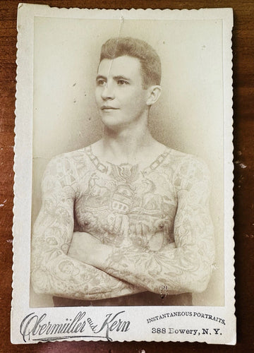 VICTORIAN TATTOOED MAN "GEORGE KARLAVAGN" CABINET CARD PHOTO BODY ART TATTOO