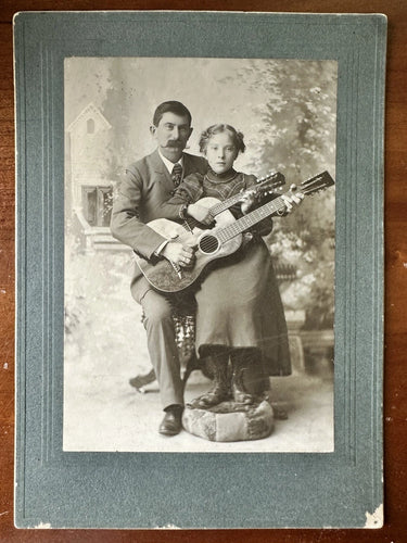 Father Daughter MUSICIANS PLAY EXOTIC DOUBLE NECK GUITAR 1900s CABINET CARD