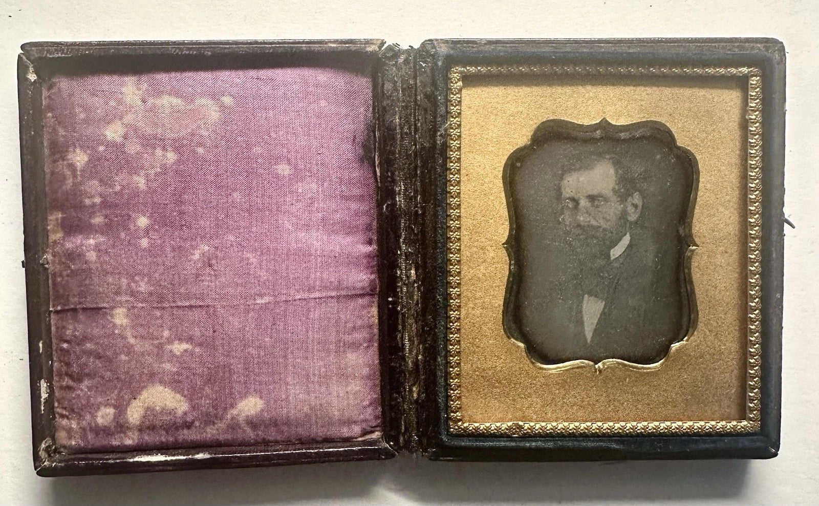 1/6 Daguerreotype Bearded Man M.B. BRADY Case Lincoln Fam Resemblance!