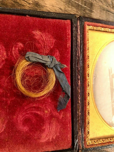 1/6 Daguerreotype Little Boy Holding MOP Dag Case, Lock of Hair, Memorial Photo?