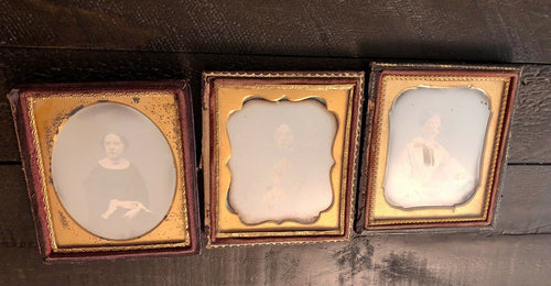 three 1/6 daguerreotypes of pretty women, one tinted