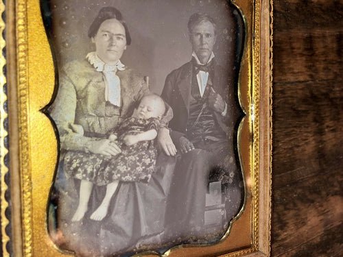 1/4 Daguerreotype Photo Barefoot Child + Parents Sleeping Or Post mortem? 1800s