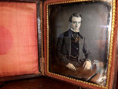 1840s 1850s Daguerreotype Handsome Man Tinted Photo New Bedford Massachusetts