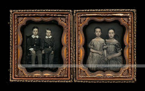 Beautiful Double Daguerreotype Photos Affectionate Siblings Boys & Girls Tinted