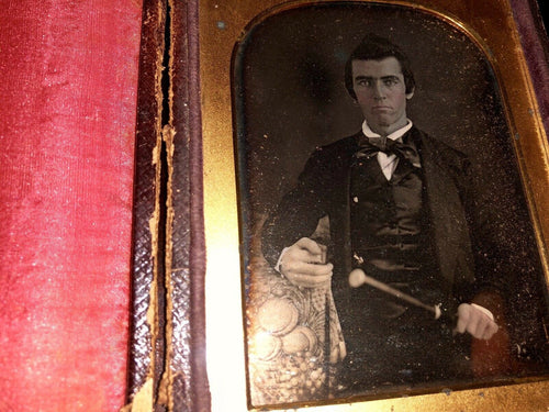 Rare 1840s 1/4 Daguerreotype Musician Holding Flute & Sword ? - Possibly Texas