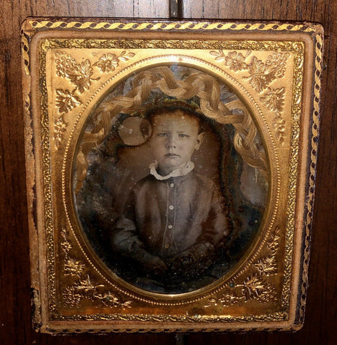1/6 Daguerreotype Little Boy with Real Hair 1800s Memento Mori Hair Art Mourning