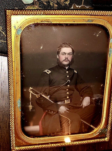 Early Civil War Soldier Armed & ID'd Tinted 1/4 Daguerreotype by Anson New York