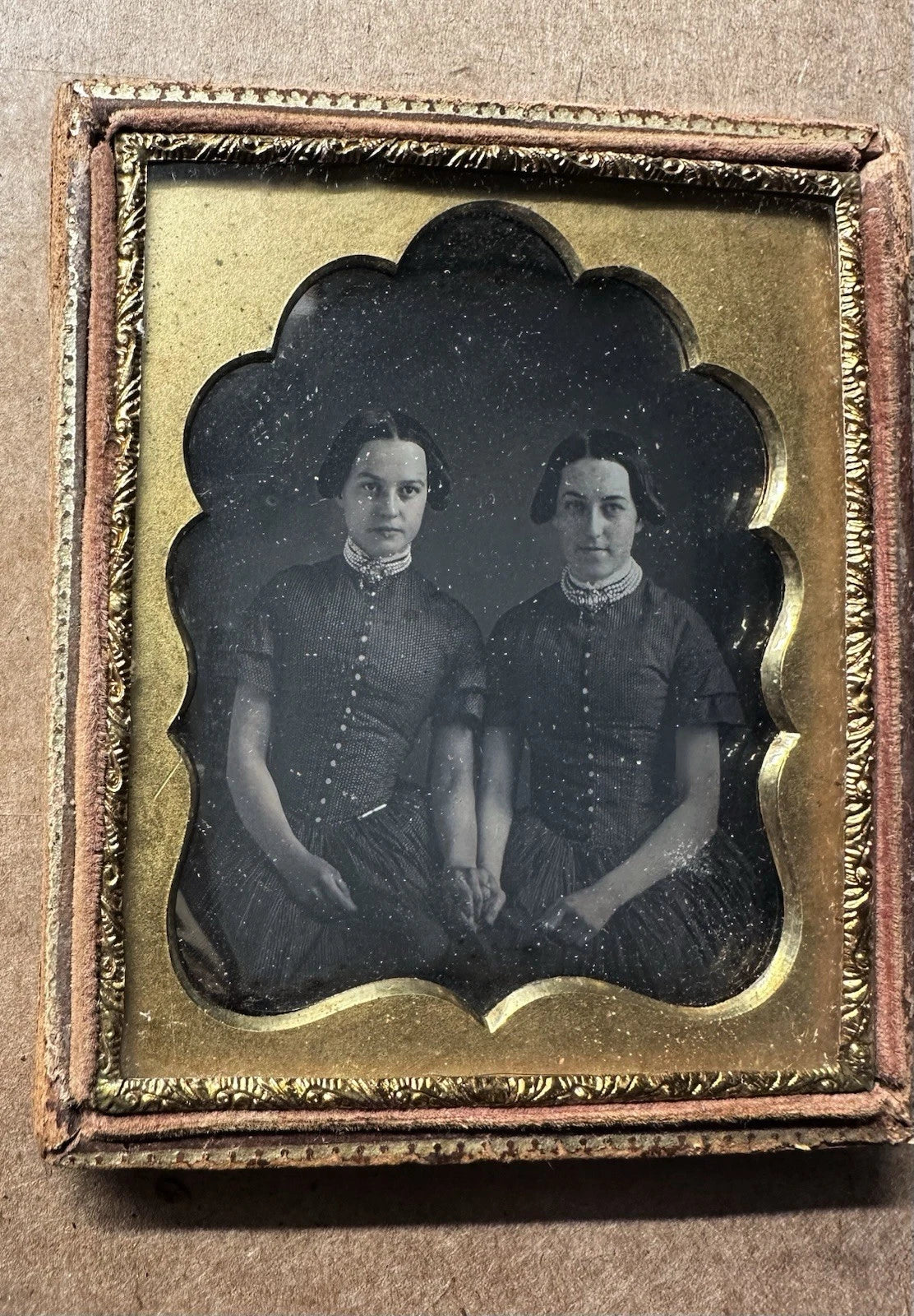 Original daguerreotype, 6th plate, original seals, in half of a case. Very good condition, original seals appear to be intact. Slightly on the darker side but that probably has mostly to do with the dark backdrop.