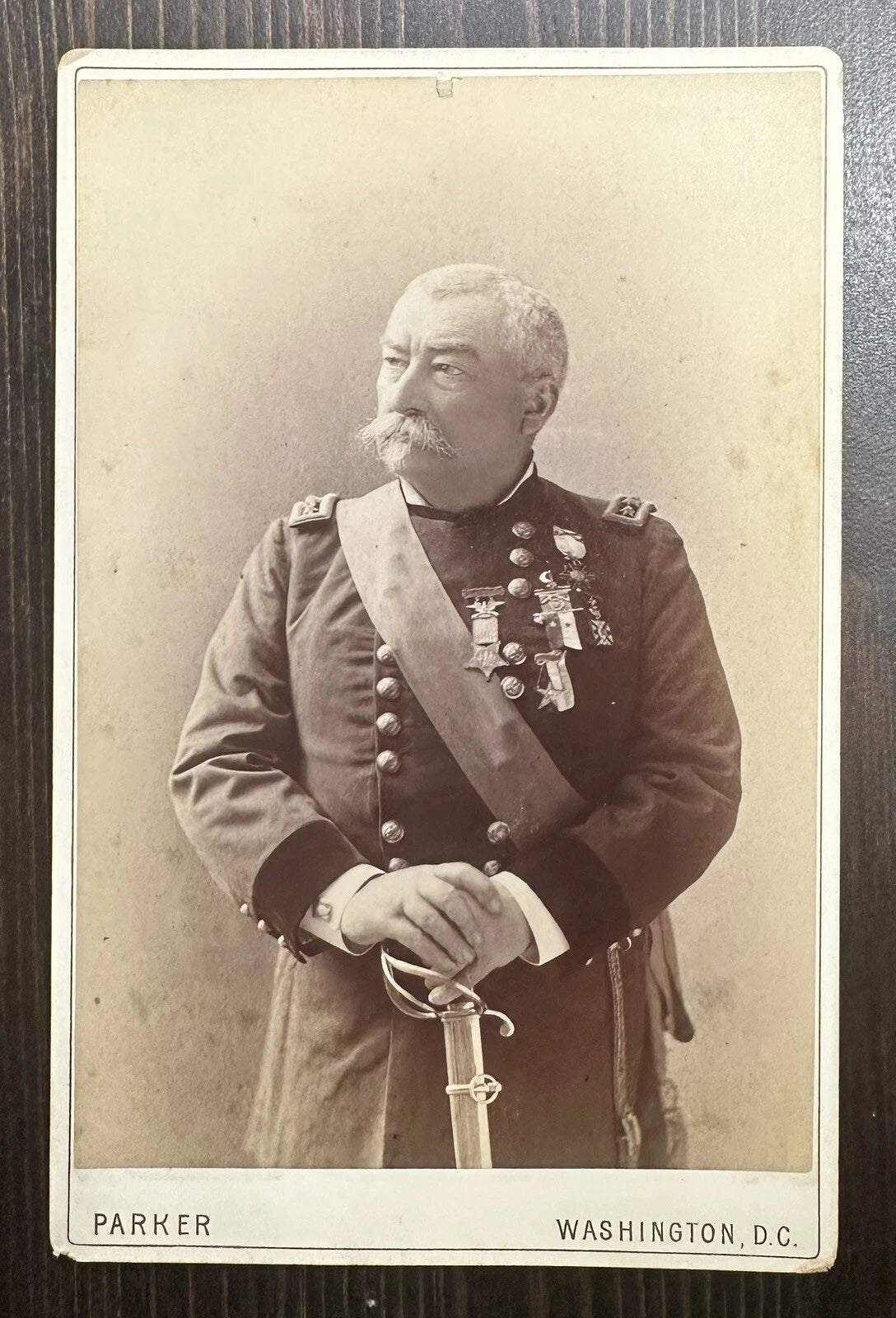Original cabinet card (6.5" x 4.25") of Sheridan by Parker, Washington, D.C. Dated 1887 on back. VG antique condition one or two minor nicks and/or bumps on mount and top edge of photograph.