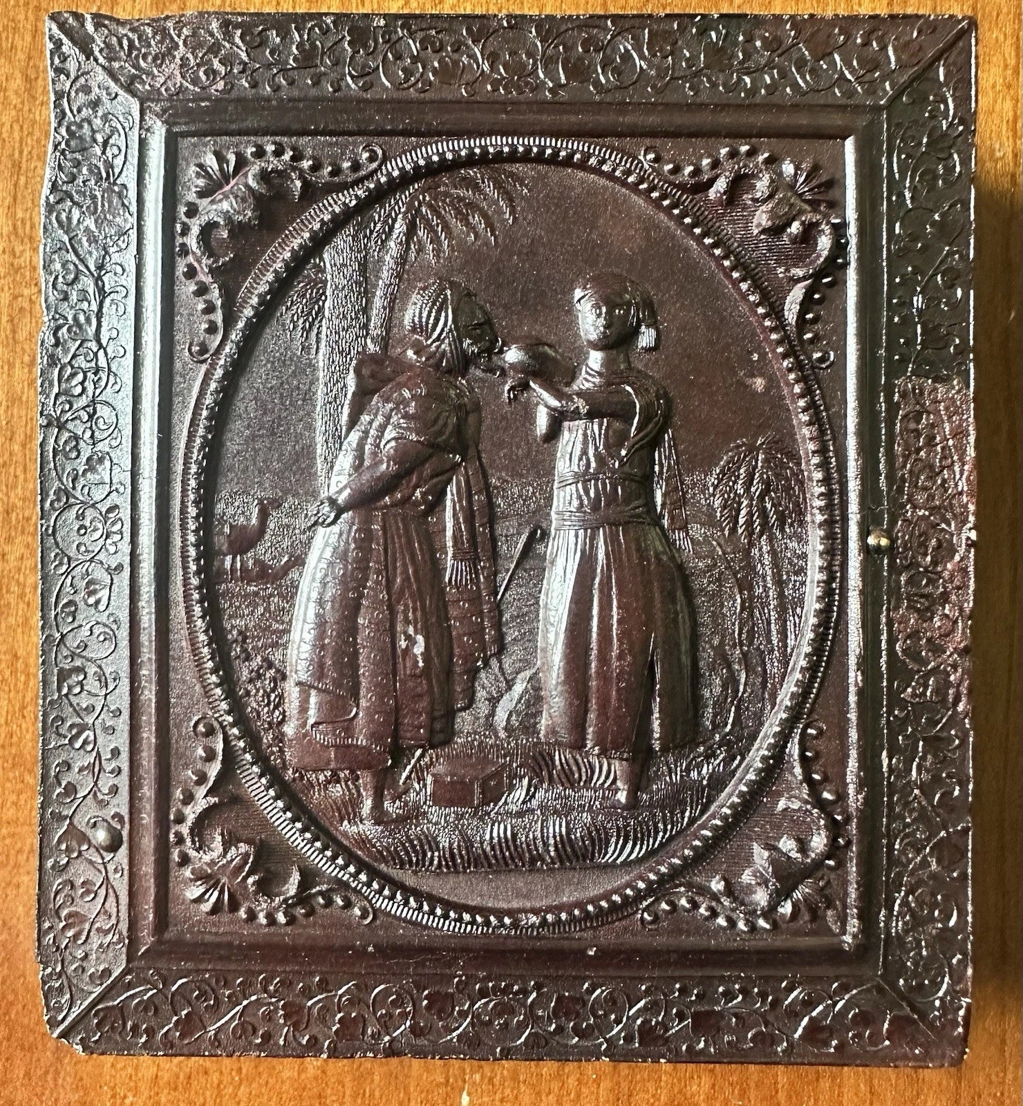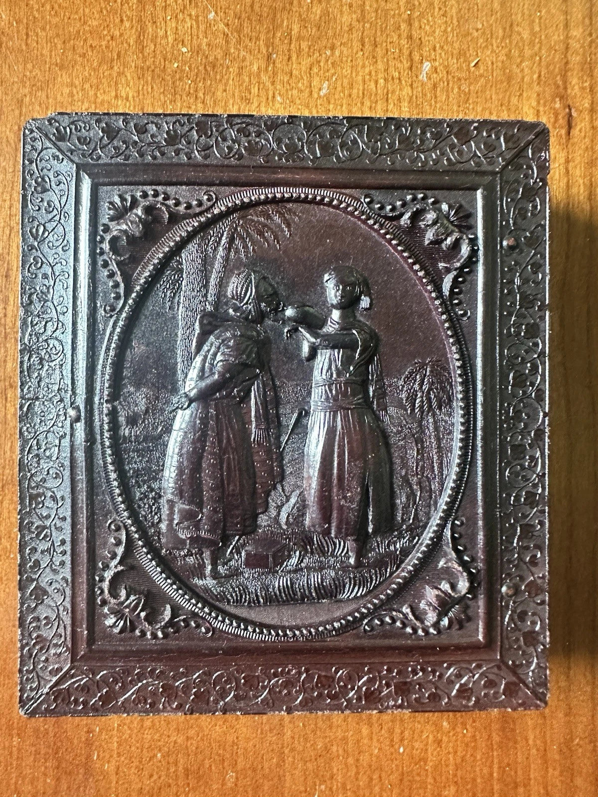 Original 1/6 case. Some chips and edge wear.. please zoom in on pics for details. The velvet pad is loose and the little rivet holding the top hinge in place is missing. Shipping: Choice of well-packed mailer or boxed Priority Mail.