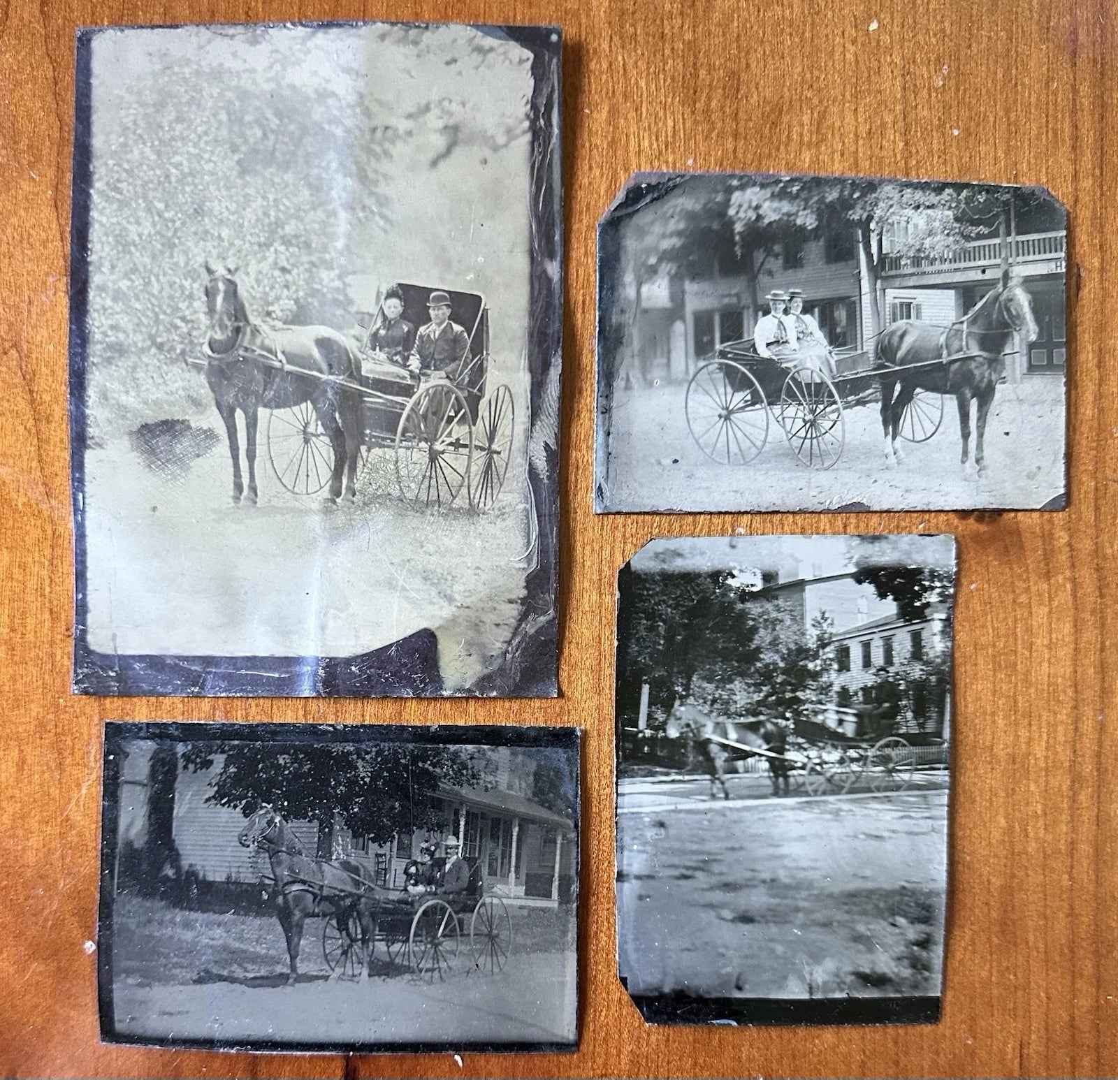 Four original tintypes, the largest is 5” x 3”. Overall very good antique condition with some light bends. Shipping: Ground mailer. Boxed Priority also available.