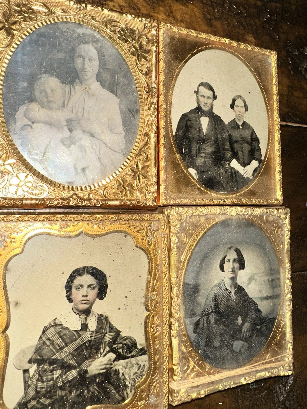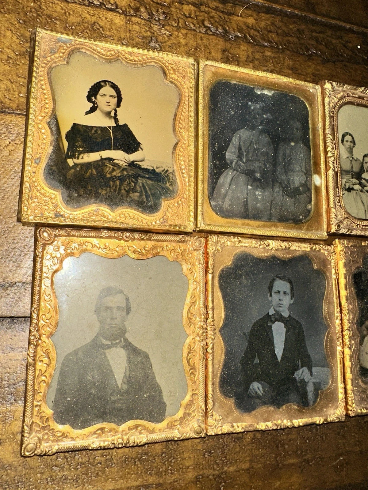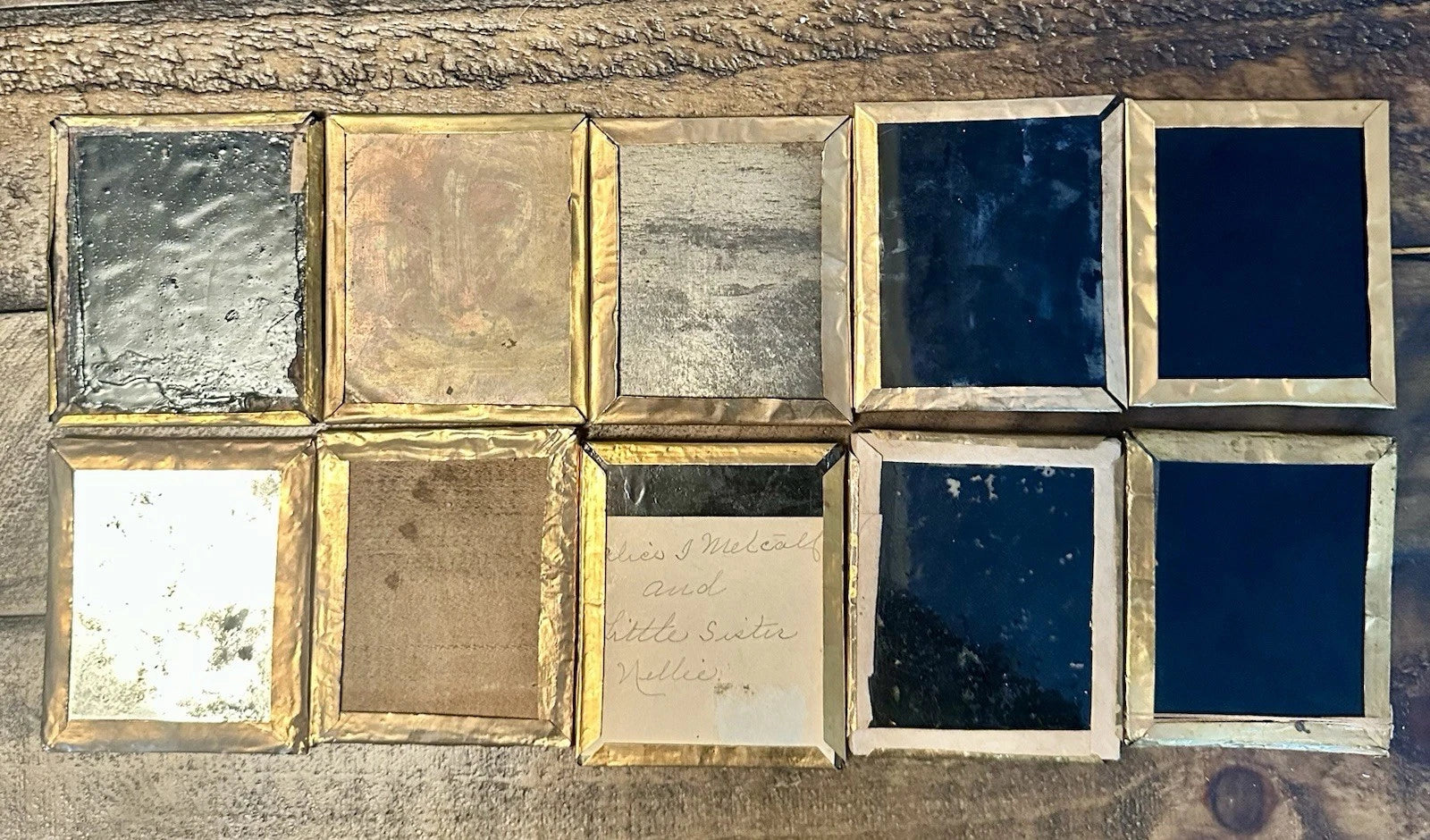 Lot of 10 uncased 1/6 plates: 7 ambrotypes, 2 daguerreotypes, 1 tintype. Individual condition range from fair to very good or better. Hopefully my pics show the details.