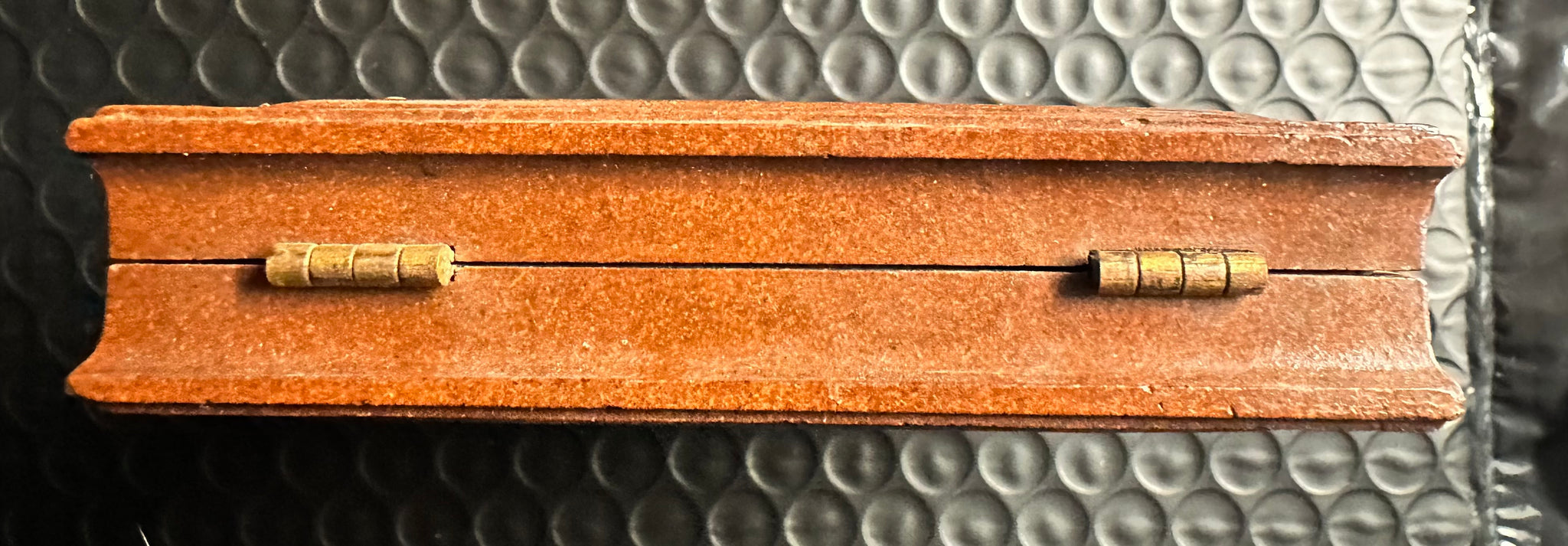 Empty 1/6 plate "Belt & Buckle" case, chocolate brown. Very good antique condition. A couple of small chips and nicks if you look closely, but a very nice example overall. Clicks closed. Shipping: Well-packed Ground mailer. Boxed Priority is also available. 1132G |