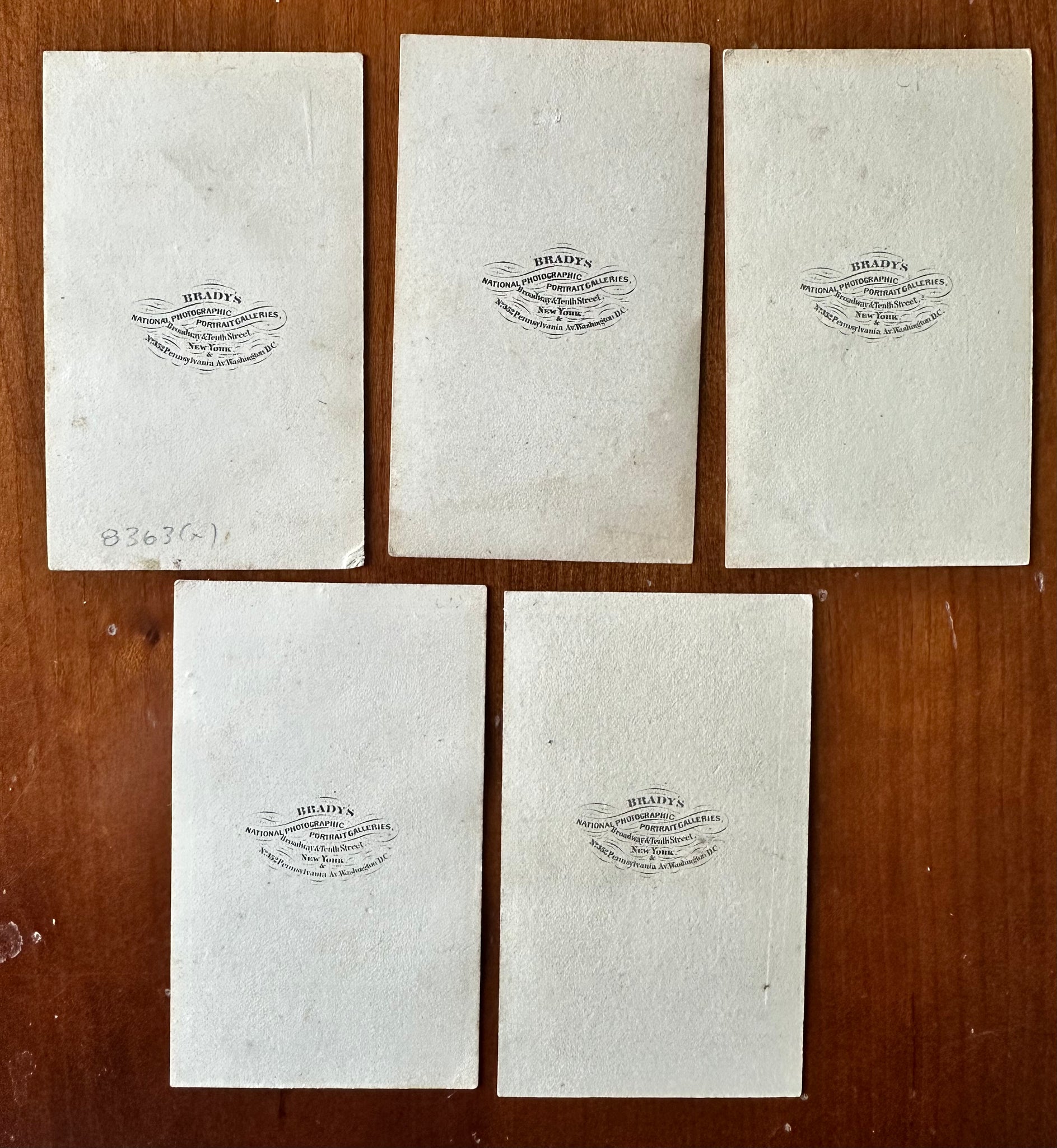 Five original CDV photos, as a whole in very good antique condition. 4" x 2.5" each.