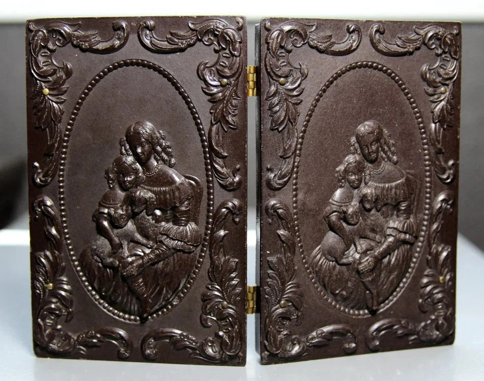 Empty 1850s DOUBLE Case for 1/9 Photo Mother and Daughter with Cat and Dog