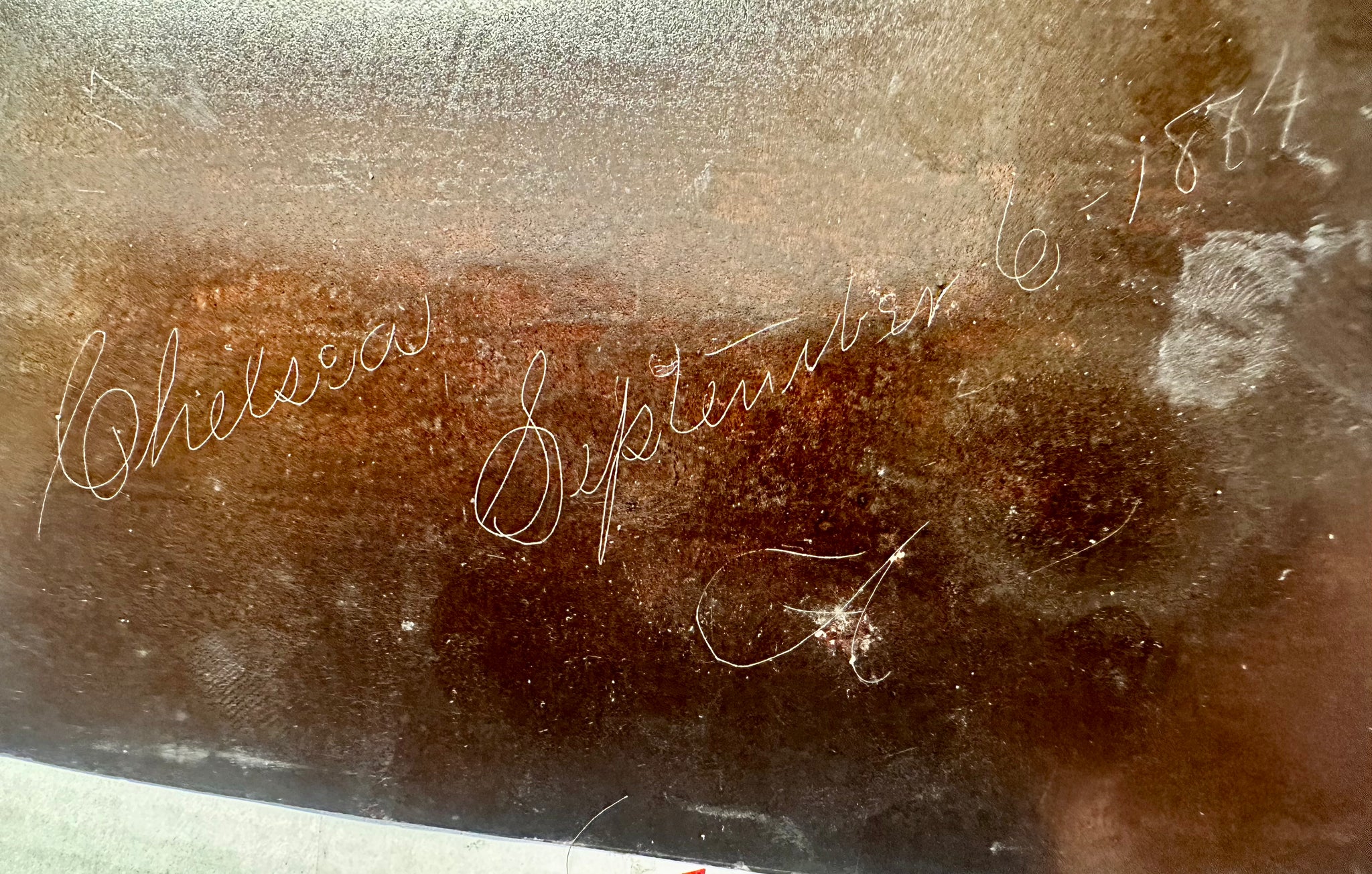 Original 6.5" x 4" tintype of a young man posing with this high wheel bike. On the back is a location and date, "Chelsea, September 6, 1884". Also: "17 yrs". Location was almost certainly Chelsea, Massachusetts because this came from a Mass estate. A popular photographer in Chelsea at this time was Mr. Samuel Taylor, so this could have been taken at his studio.