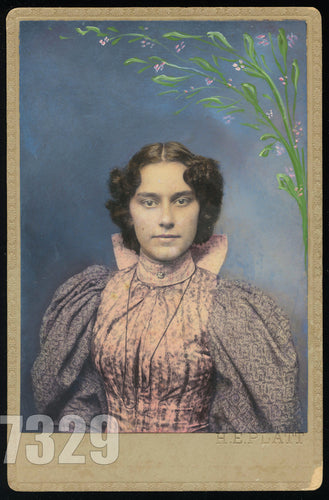 Beautiful Victorian Girl Tinted Dress Painted Background 1890s Photo Folk Art
