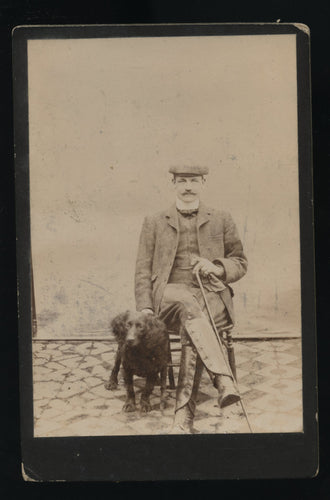 Man in Hat Posing with Spaniel Dog Cabinet Card 1880s Photo Outdoor