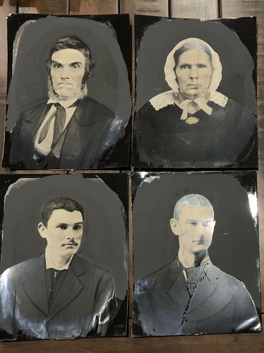 Mourning Group Set of 4 Large 10 x 8 Full Plate+ Painted Tintype Photos