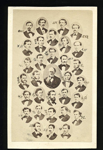 unusual composite cdv 32 men with greek letters 1860s utica new york fraternity?