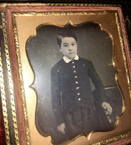 Daguerreotype of Casually Posed Young Man Longish Hair & Hat, Possibly Tinted