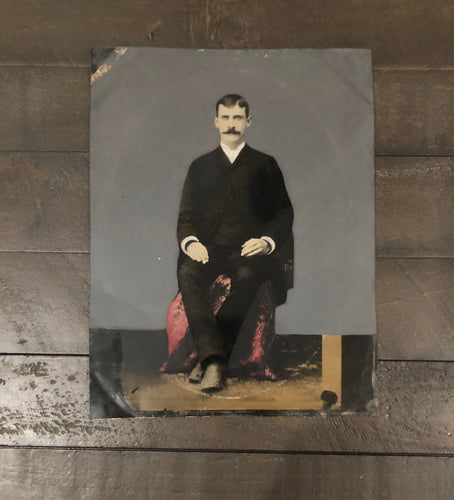 Full Plate+ Painted Tintype, Handsome Man w Mustache
