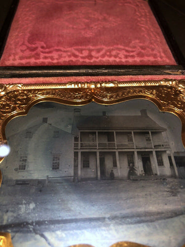 Outdoor Purple Glass Ambrotype of House or Hotel 1860s, Civil War Era