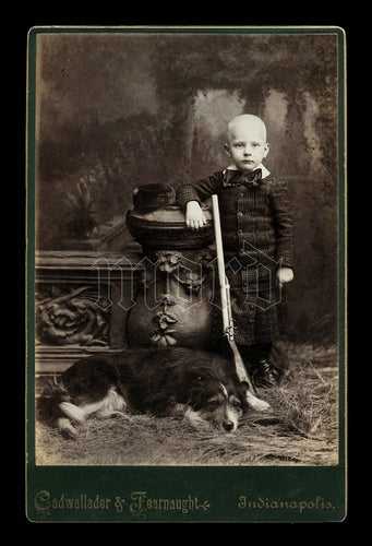 Dated 1880s Cabinet Photo Boy Posed with Dog & Toy Gun - Indianapolis