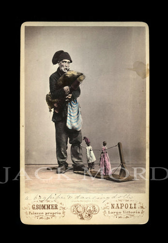 Tinted Photo Puppeteer with Dancing Black Puppets or Dolls / Rare Occupational