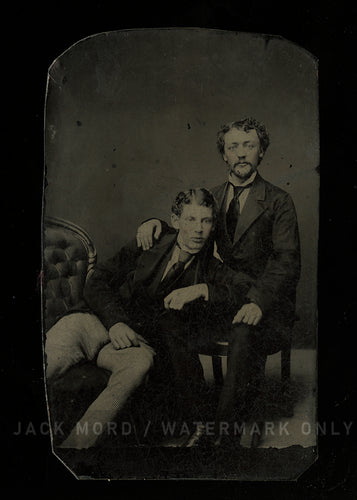 vintage antique 1860s c.1870 tintype photo affectionate men / male friends