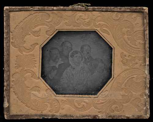 Early 1840s Daguerreotype Photo of a Family, Rare Embossed Design Mat