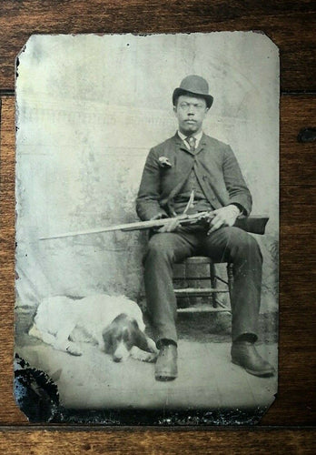 Rare Antique Tintype Photo African American Black Hunter w Rifle & Hunting Dog
