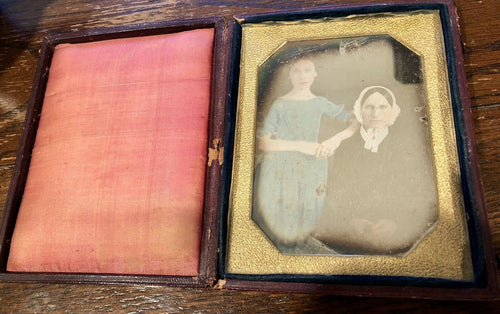 1/4 Daguerreotype Tinted Blue Dress Girl & Mother 1840s