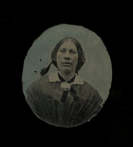 Small Oval Tinted Ambrotype Photo of a Woman Pr Once Photographic Jewelry Brooch