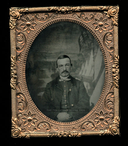 1/6 Tintype Photo Civil War Soldier US Flag & Camp Scene Backdrop 1860s