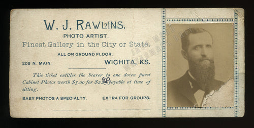 Rare 1800s Wichita Kansas Photographer Advertising Business Card with Portrait