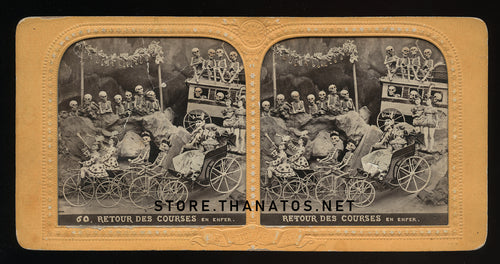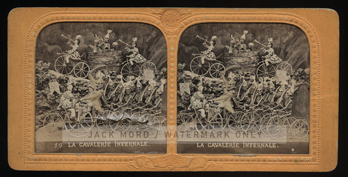 Amazing 1860s Tissue Stereoview Photo ~ Devil Leading Skeleton Army - On Bikes!