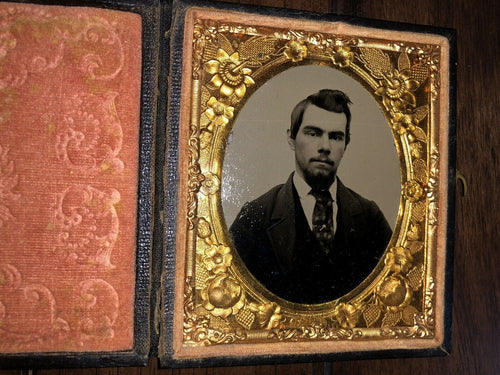 1850s 1860s 1/6 Tintype Photo Of Handsome Man - Interesting Unusual Mat!