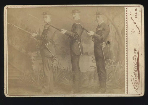 Cabinet Card Photo Group of Armed Indian Wars Era Soldier Rifles Ada Ohio 1800s