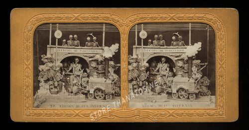 Rare 1860s Tissue Stereoview Photo ~ Satan Riding the Hades Express Train