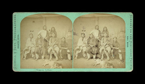 Rare 1860s Stereoview of a Chippewa Indian Group with Wolf