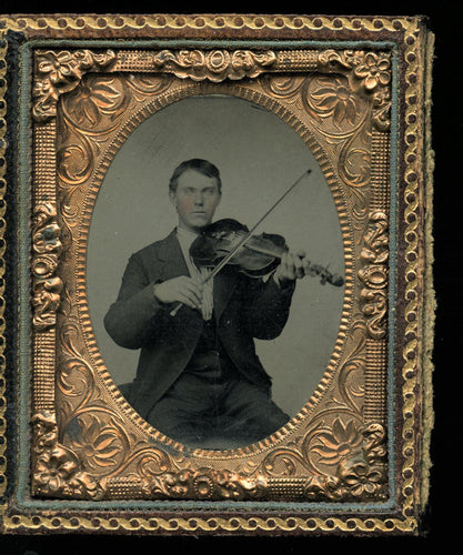 1860s Tintype Photo Man Playing Violin / Violinist / Musician
