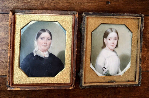Edward Dodge Antique Portrait Miniatures Virginia Mother & Daughter Holding Doll