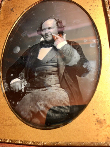 Unusual Half Plate Daguerreotype Bald Man Touching Face! Deaf / Sign Language ??