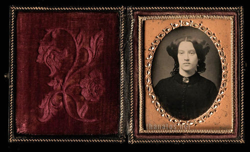 1860s Sad Teen Girl Mourning Dress Painted Gold Jewelry Virginia Mississippi