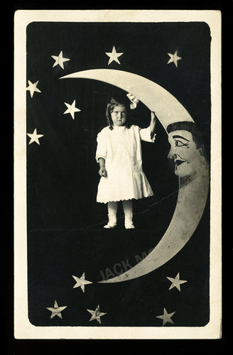 Antique RPPC Photo ID'd Little Girl Standing on Paper Moon 1910s