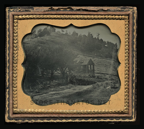 1/6 Ambrotype One Room Farm House / Schoolhouse - 1850s Outdoor Scene