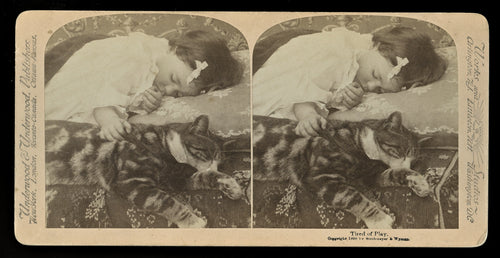 Antique 1898 Stereoview Photo Little Girl Asleep with Cat