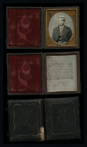 1/6 Daguerreotype ID'd Man with Beard & Cocked White Hat / Full Leather Case