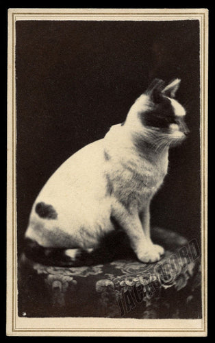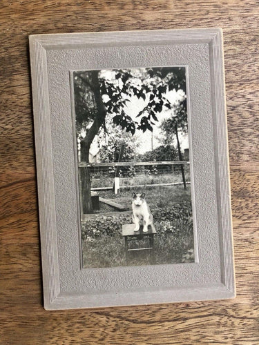Antique 1900s CAT Cabinet Photo - Posed Alone Outside On Stool